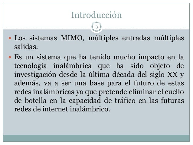 Introducción Los sistemas MIMO, múltiples entradas múltiples salidas. Es un sistema que ha tenido mucho impacto en la tecnología.