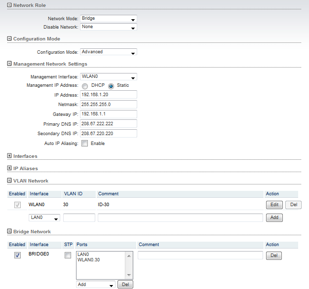 Bridge transpoarete o routing entre WAN y LAN, con NAt o sin NAT.